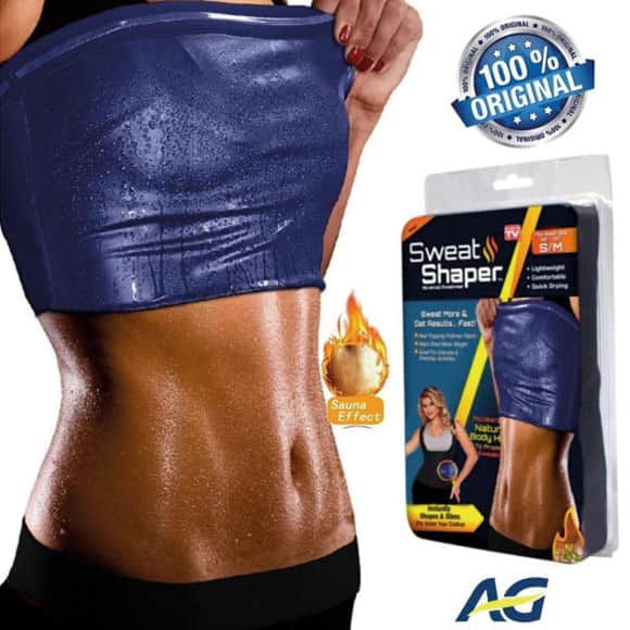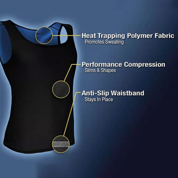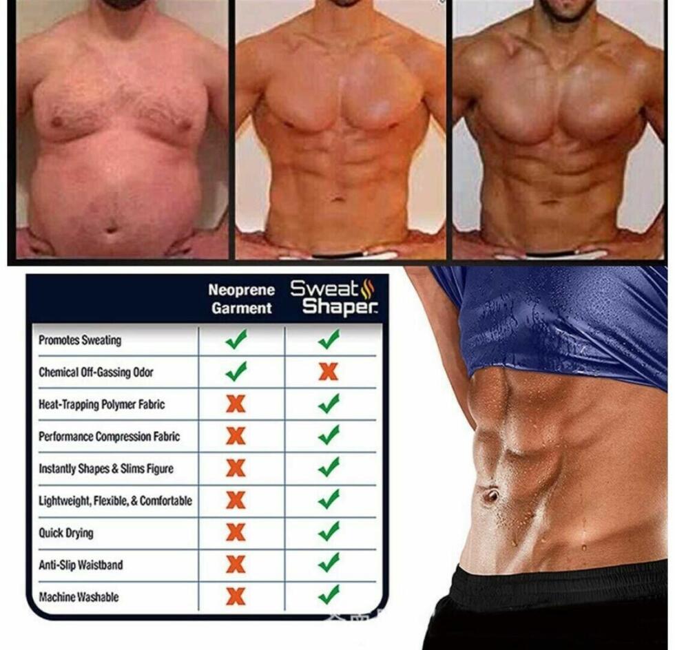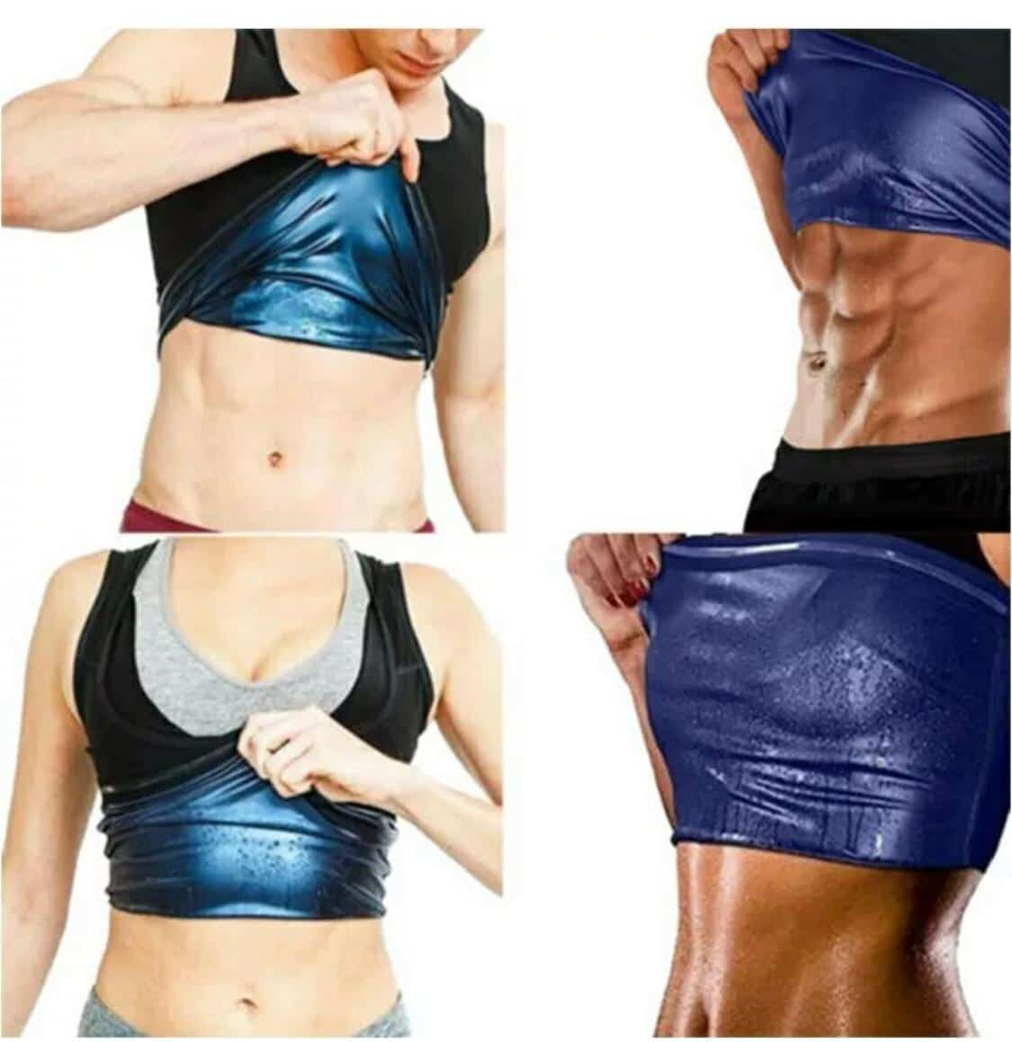 solo usamos tela polimérica en la camiseta reductora Sweat Shaper que retiene el calor para estimular el calor natural de su cuerpo y estimular la transpiración con cualquier tipo de actividad física.