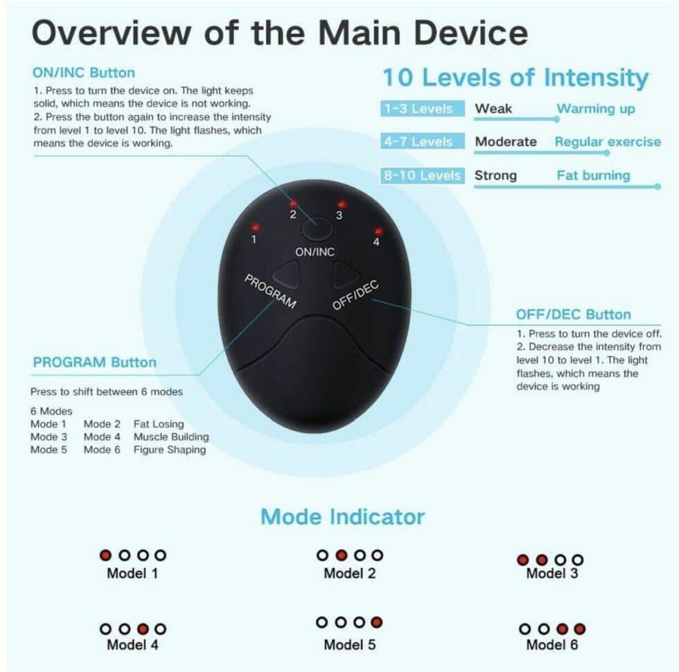Estimulador muscular eléctrico ems inalámbrico ejercitador 6 Pack