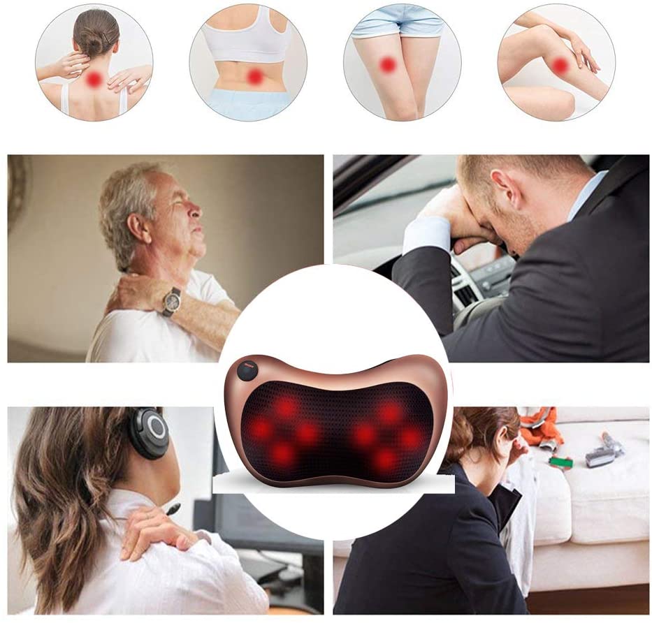 - 【 Diseño ergonómico 】 el cojín de masaje tiene un diseño ergonómico que se ajusta a la perfección a su cuello y que también se puede utilizar para un masaje de espalda, del cuello, de del abdomen, pantorrilla, y el muslo.