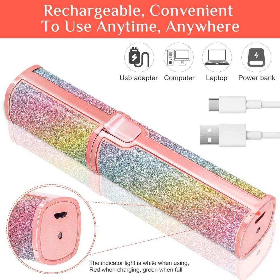 • 【Diseño elegante y portátil】 El depiladora de cejas cuenta con una elegante forma de lápiz labial y también se adapta cómodamente a sus manos. Puede transportarlo fácilmente en una cartera, bolso o bolsa de cosméticos debido a su tamaño compacto, lo que lo hace perfecto tanto para uso doméstico como para viajes.