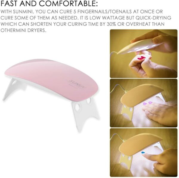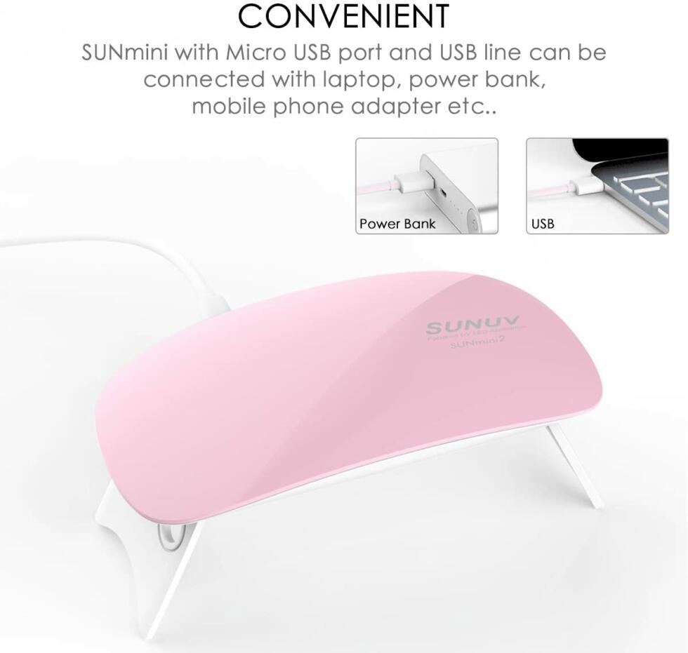 Lámpara Led Uñas, SUNUV Mini2 Secador UV Portátil para Gel Manicura Shellac Esmalte de Uñas Manicura Pedicure de Hogar